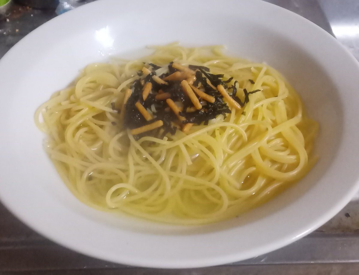 パスタにバター絡めてお茶漬けのもとぶっかけたら旨い