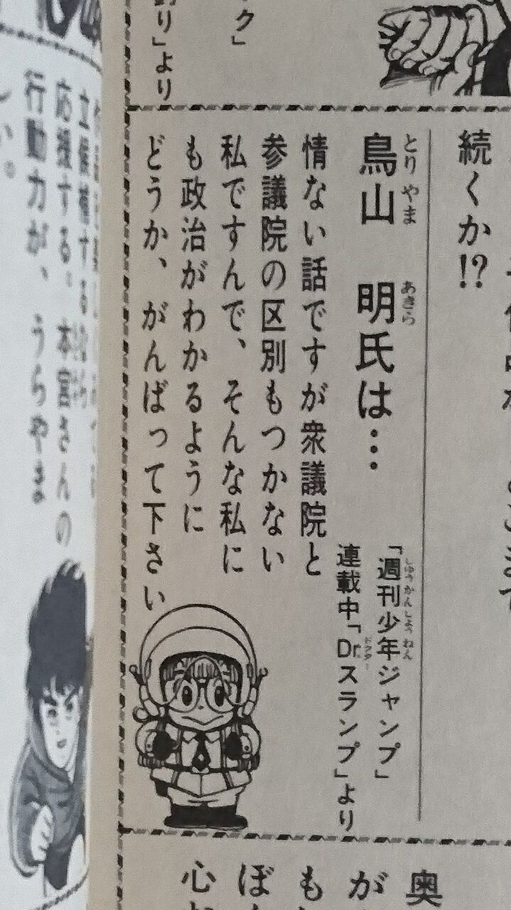 鳥山に限らず少年誌で仕事してる漫画家って政治的な発言しない感じだけど