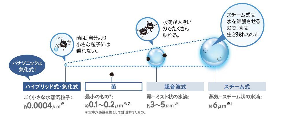>気化式は水を気化させて加湿するため、超音波式のように水滴を飛ばすことはなく、細菌が室内にばら撒かれる可能性が低くなります。