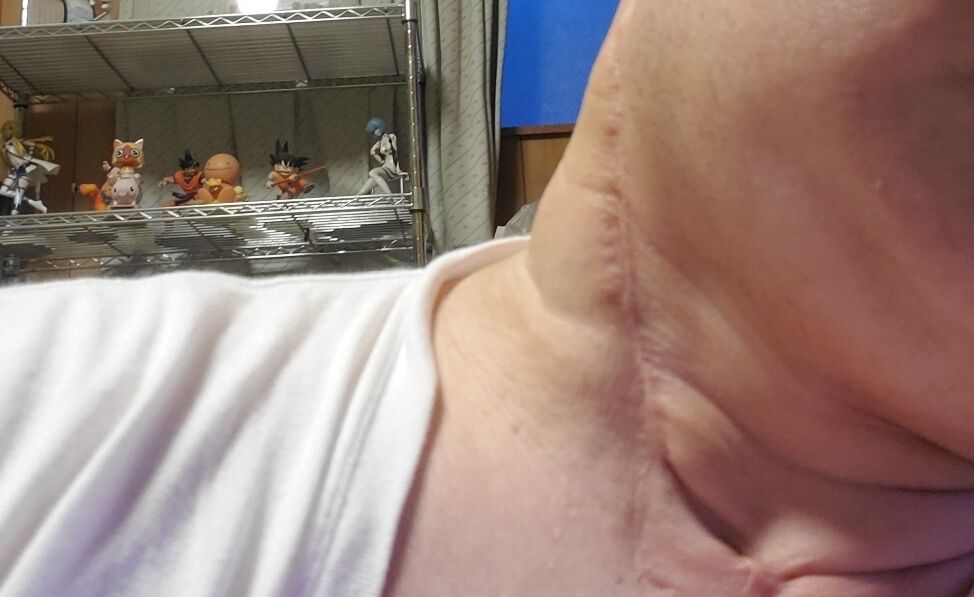 ただ、糖尿で免疫落ちてて身体がウイルスに負けて喉の奥と頭の間の空白部分に大量の膿が溜まってそれを取り除くために耳の後ろから喉仏のあたりまで30cm近く切って吸い出したんよ。