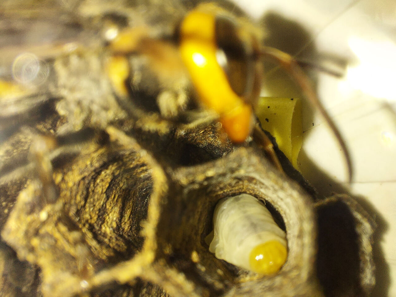 そん時の巣から駆除剤から逃れた羽化直前の子を1匹と巣の一部と幼虫2匹を救ったんよ