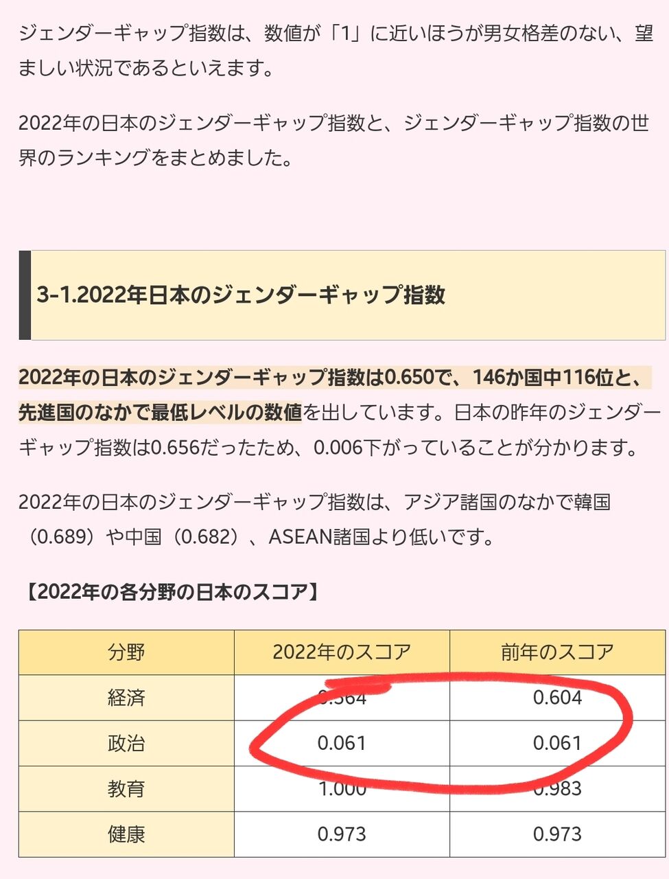 ジェンダーギャップ指数って主に問題これだよな