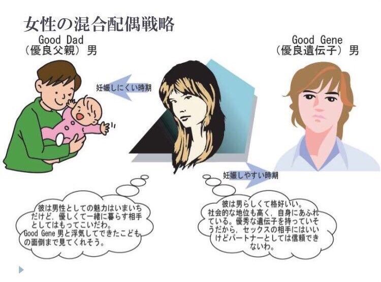 「一人の女とずっと番う誠実な男」より「ホイホイ浮気する男」のほうが子どもを多く残せる可能性は高いじゃろ?