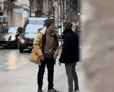 泣いてる女の後ろでウキウキな黒人のやつ