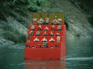 世間の目に負けて、一人で産んだ女の子を川に流すシーンで弔いの雛人形が流れる演出なの。
