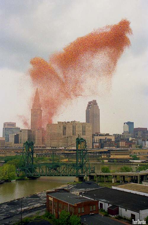 虫の大群にみえた