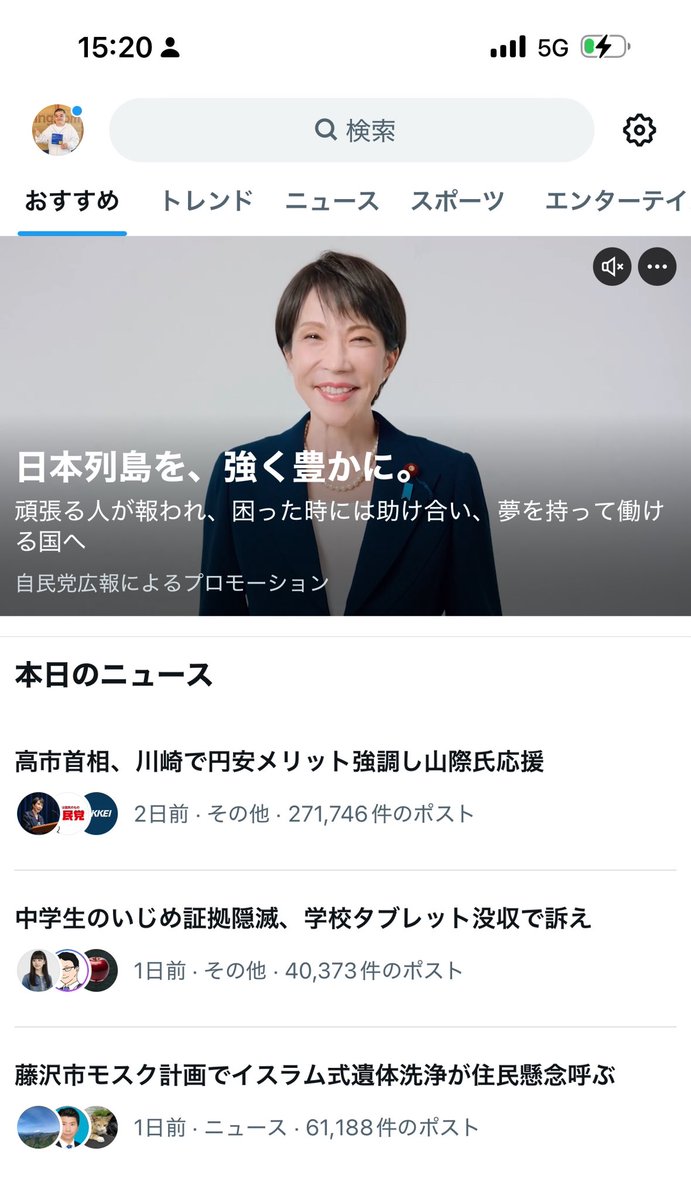 いくら高市さん人気でも6千万視聴はありえないですね。自民党がスマホ・ファームに依頼したらやりすぎちゃったんですかね