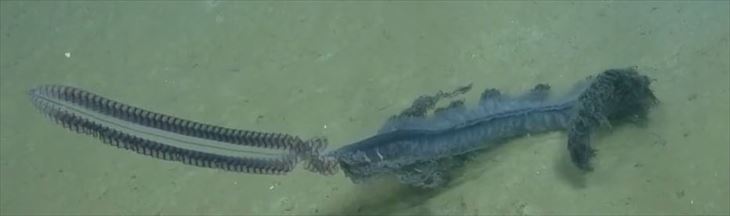 クサウオ科とみられる新種の魚を撮影した。この魚は白い半透明の体で、羽のように広がったヒレ、うなぎのような尾をもち、
