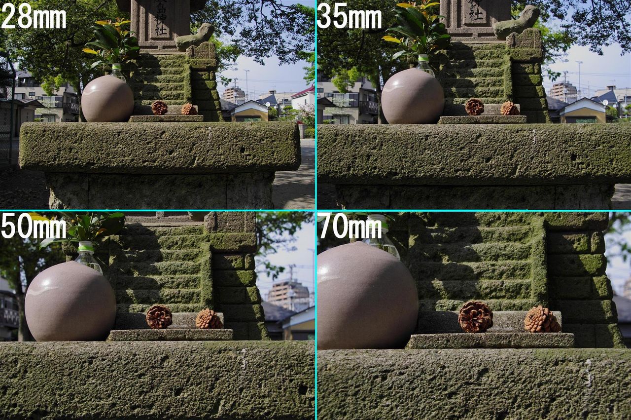 反対に広角だと遠くの物が小さく写る