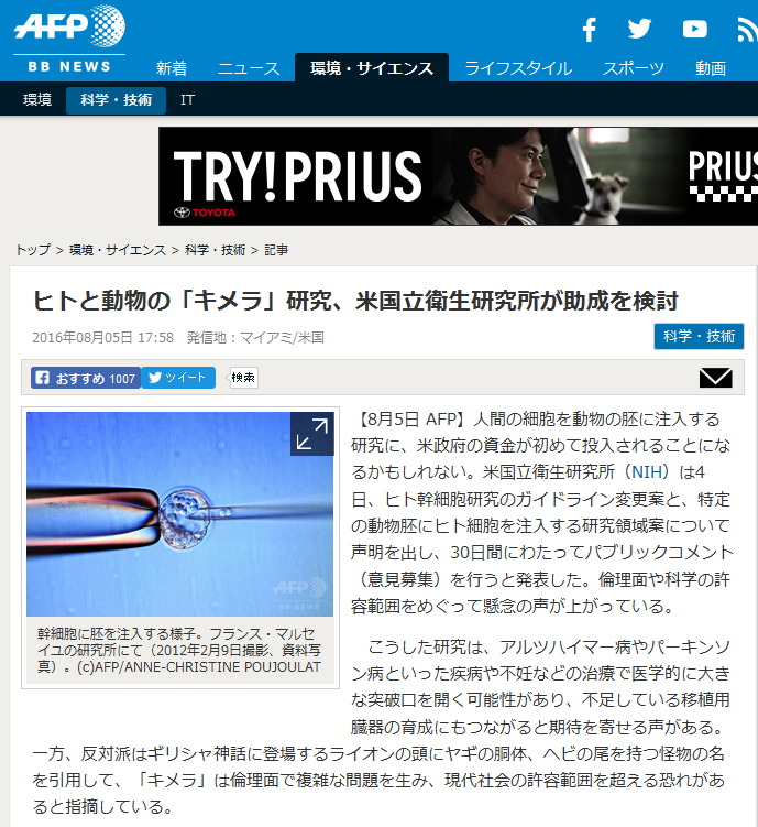 人間の細胞を使って動物の胎内で育ちキメラとして誕生してしまうんやで?