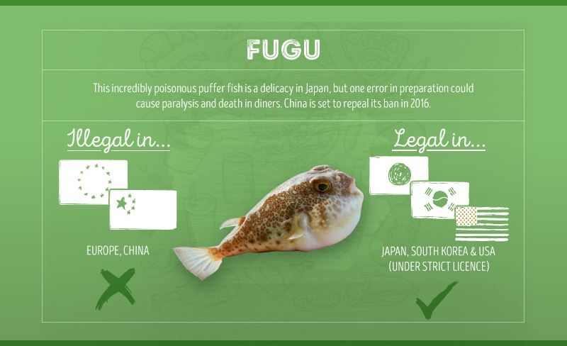 容認国 : 日本、韓国、アメリカ(全て資格所持者が調理した物のみ)