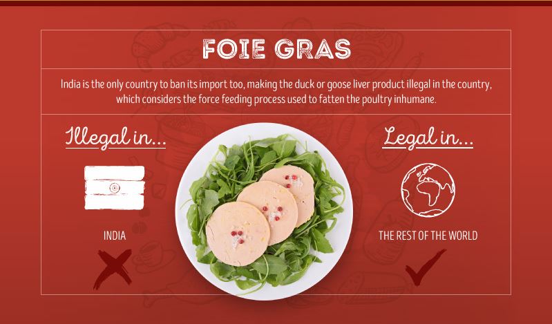 フォアグラは、ガチョウやアヒルなどに沢山の餌を与え、肝臓を肥大させてつくるという、悪名名高き三大珍味です。その非人道的なやり方に抗議があり、インドでは輸入共に禁止となっています。