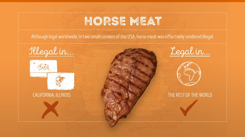 法律的には世界中で容認されていますが、アメリカの上記2つの州では、人道的な観点から、馬の肉は違法だそうです。