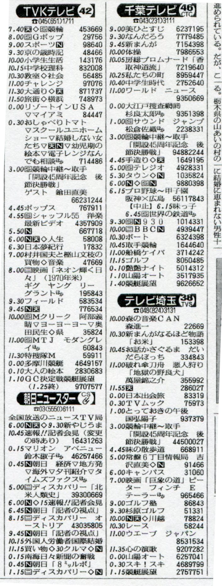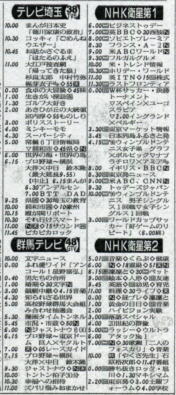 生まれてない年の番組表見ても何を書いていいのやら