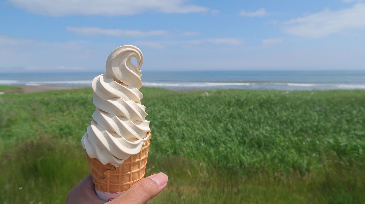 サムライソフト(豚丼のたれが入っている)を食べ海を見ながら最後の北海道を満喫