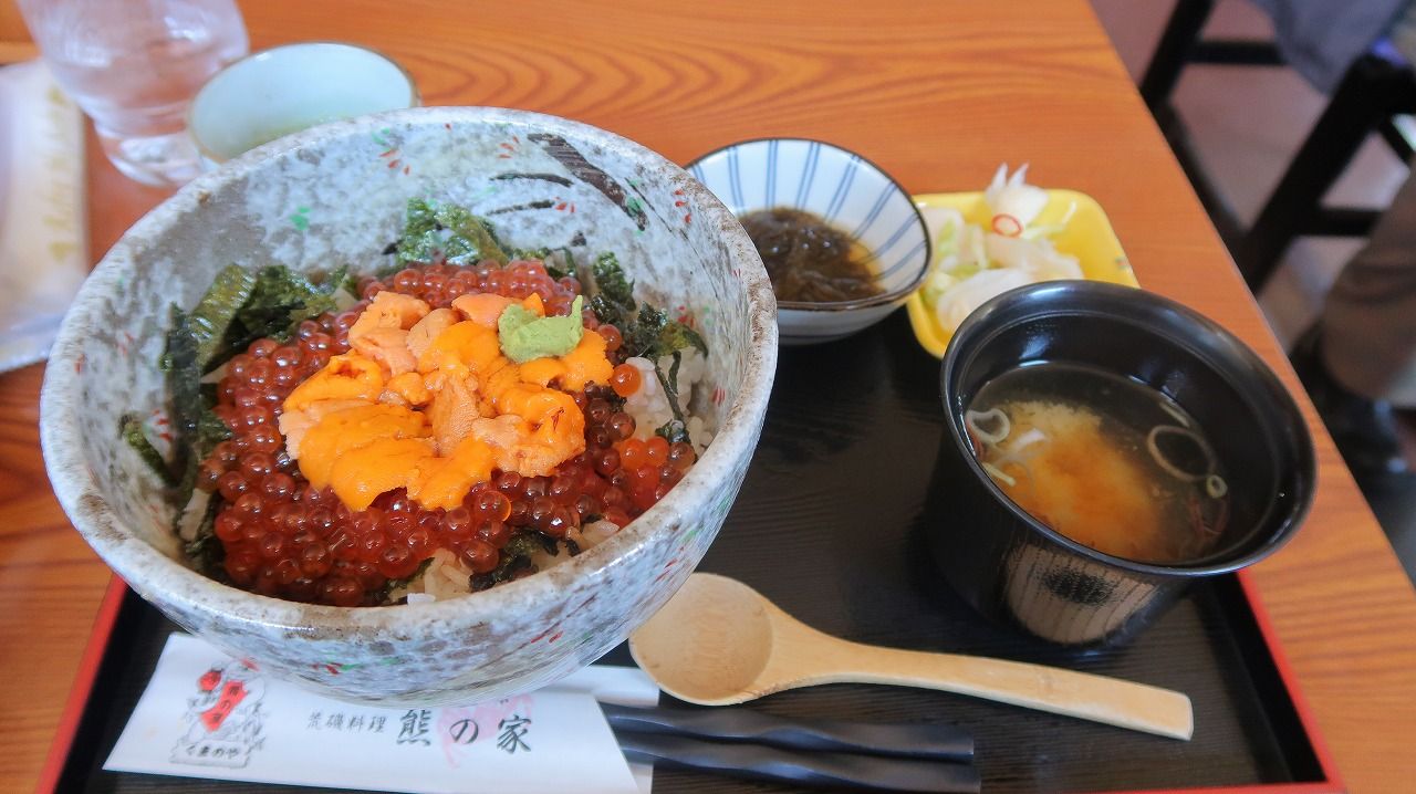 昼過ぎ、ウトロ港について昼食(ウニいくら丼)