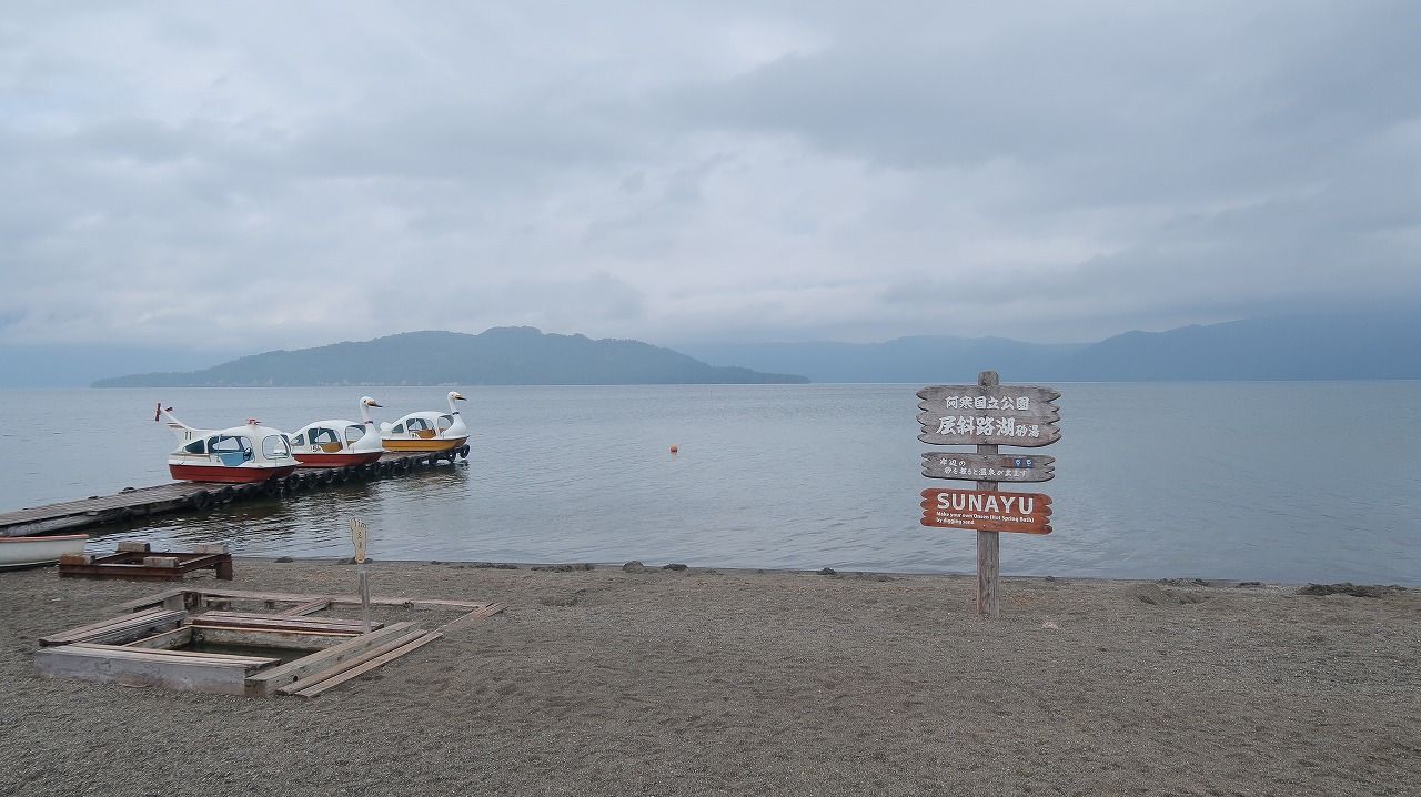 砂湯ができる湖畔へ