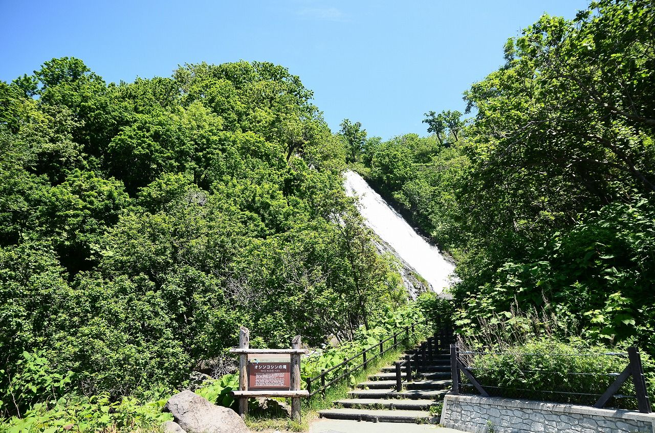 ひたすら車で走っていると途中にオシンコシンの滝が見えてきます