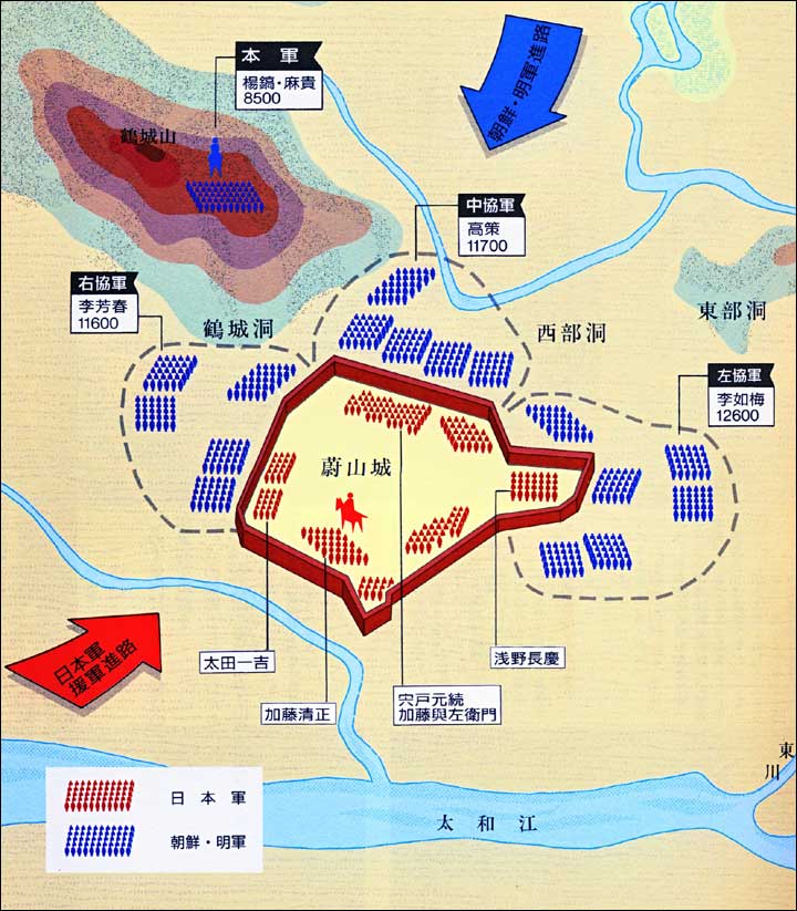明軍と朝鮮軍は甚だ多くの死傷者を出し、城の下に達することさえも出来ずに退却した[12]。
