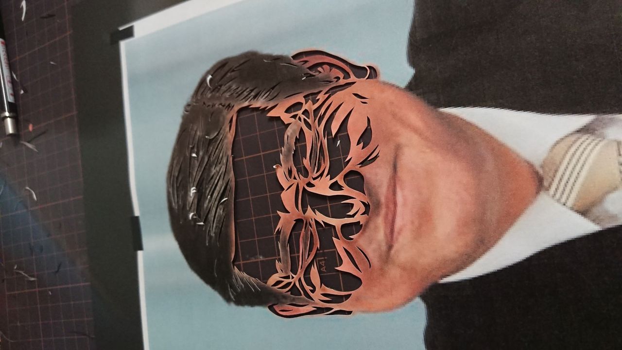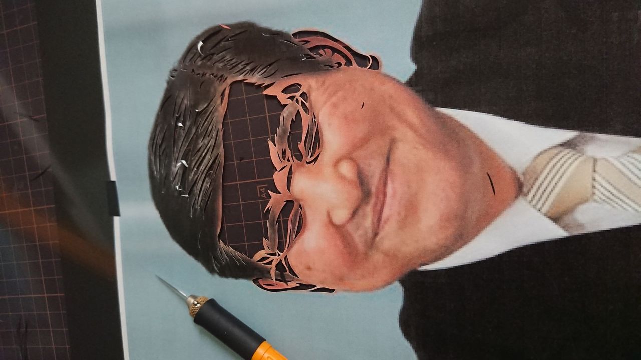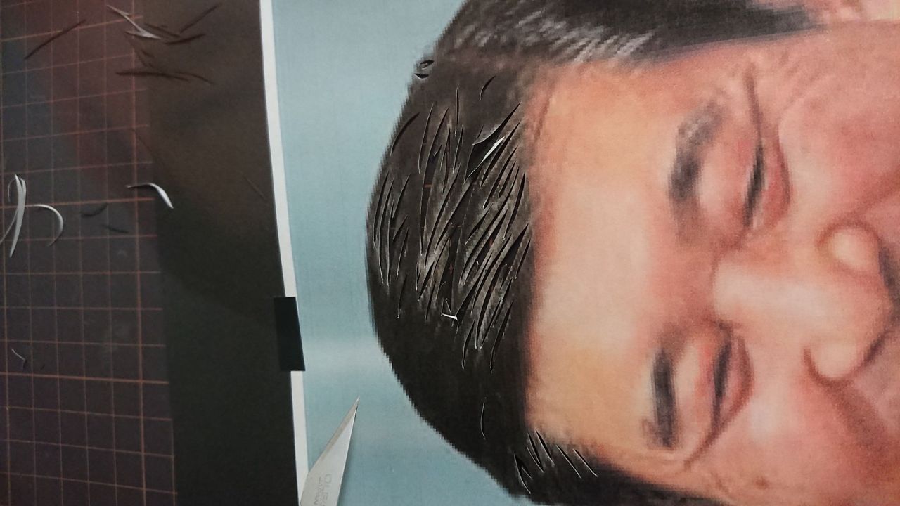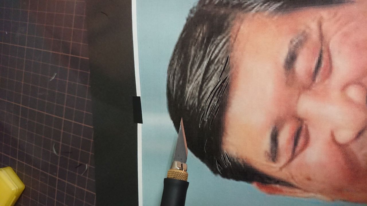 目を切っていきます。人物を切る上で目元が一番重要なので、慎重に切ります。