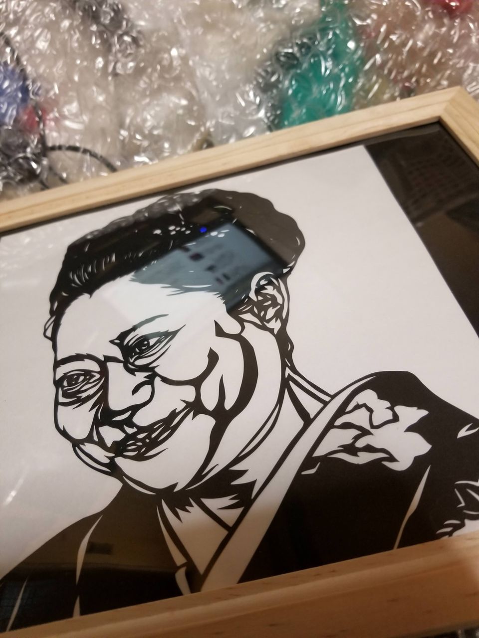 額を切りました。時々裏側から見て全体のバランスを見ます