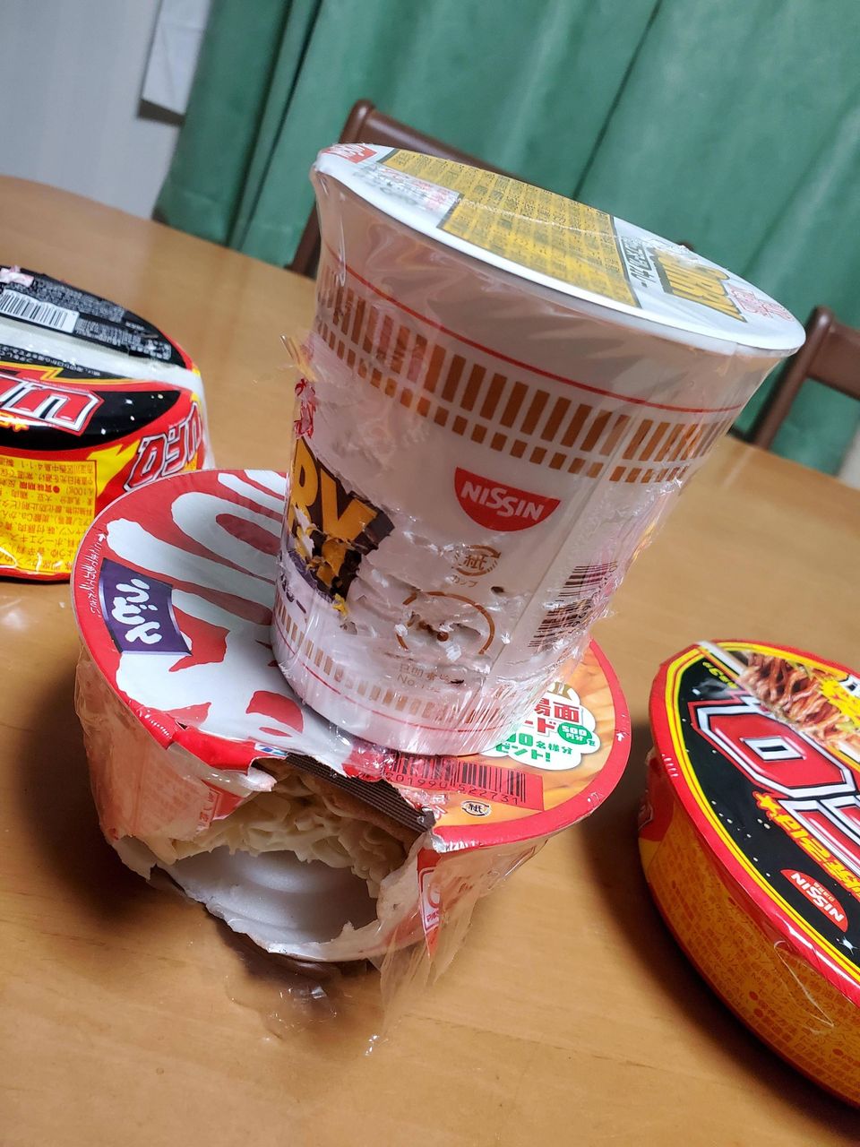 いや今日午前中から買い物行ってて帰ってきたらカップ麺が散乱しててなんだこれってなった