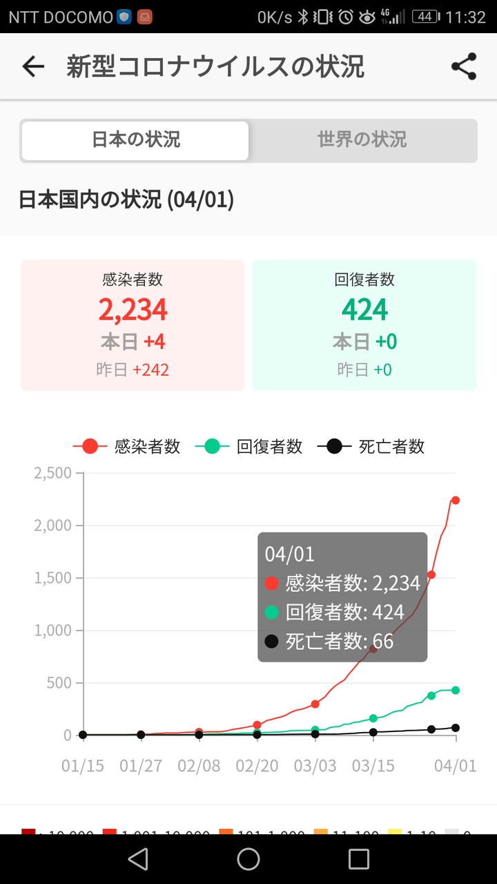 世界の日毎Death が4300に増加してるっていう