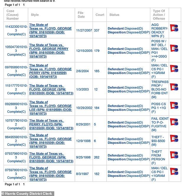 フロイドは少なくとも5人の刑務所で刑務所にいた。 起訴文書の1つで、当局はフロイドが1990年代に規制された物質の盗難と配達について2つの有罪判決を下したことを指摘しましたが、フロイドがこれらの犯罪のいずれかのためにいつの時間を務めたかは不明です