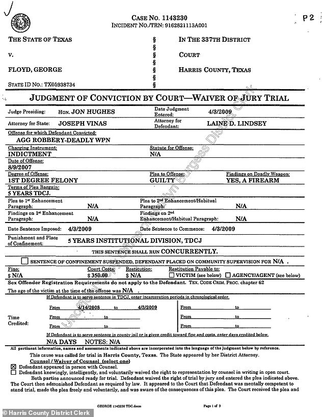 裁判所の記録によると、フロイドは女性の家に侵入し、彼女の胃を銃で突き、薬物とお金を求めて家を捜索した強盗に起因する悪化した暴行により、2009年に5年の刑を宣告されました。
