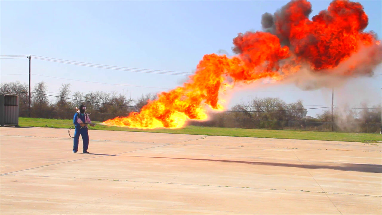 開けたフィールドでの戦闘では言うまでもなく銃器に圧倒されるが、敵が塹壕や屋内に篭ってる時には絶大な威力を発揮し、火炎そのもののダメージはもちろん酸欠や一酸化炭素中毒といった状態以上を付与することも可能。