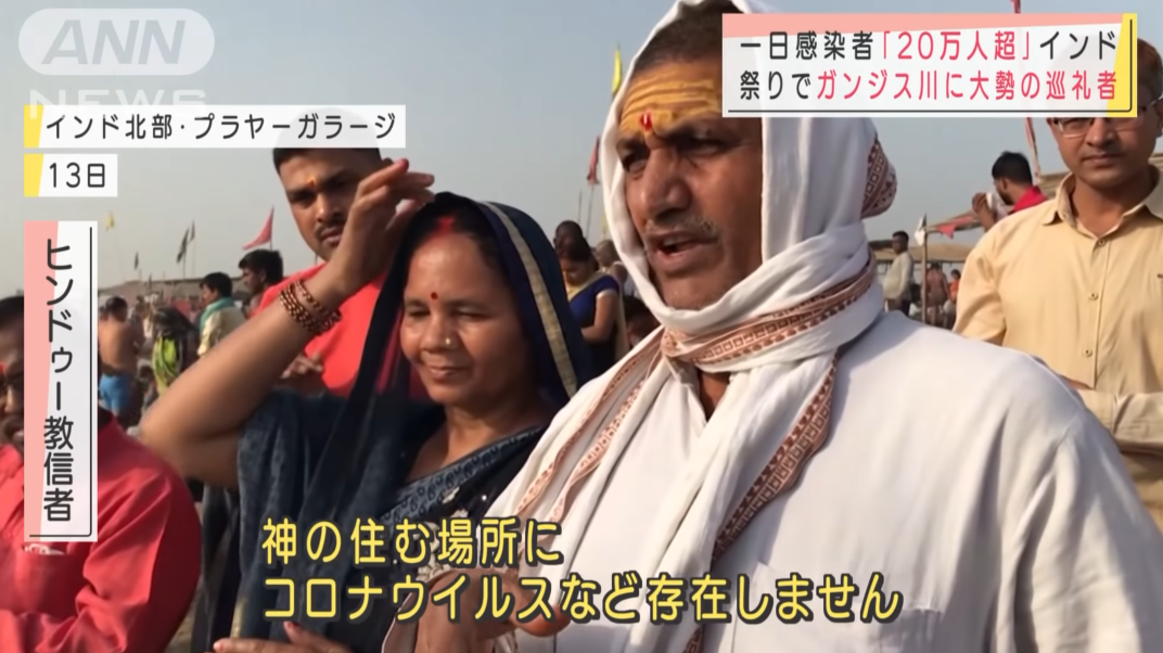 現地人のインタビュー見たけど自分は川入って身を清めれば神のご加護みたいなのがあるから感染しないと言っていたな