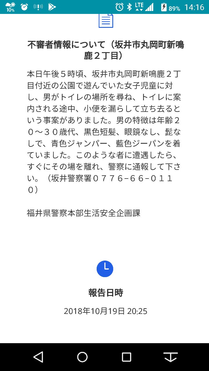 これを不審者情報として流す意味あるんか?